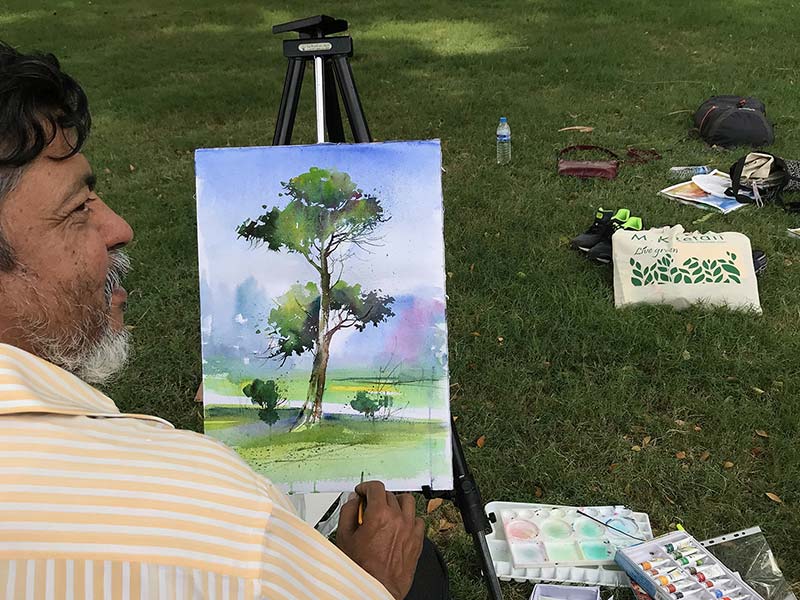En Plein-air is a French word which translates to Outdoor daylight painting in English. It is very rare when an artist is comfortable for Plein-air painting just as comfortable as painting in studios. And so it made Hue of watercolor 12th edition workshop extra special with Milind Mulick.